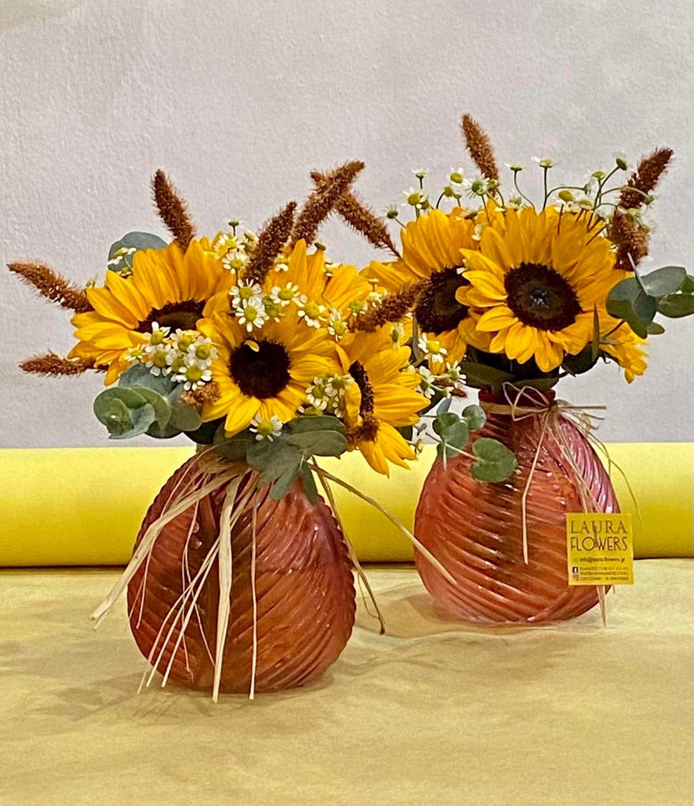 Σύνθεση με ήλιους σε μοναδικό γυάλινο βάζο.