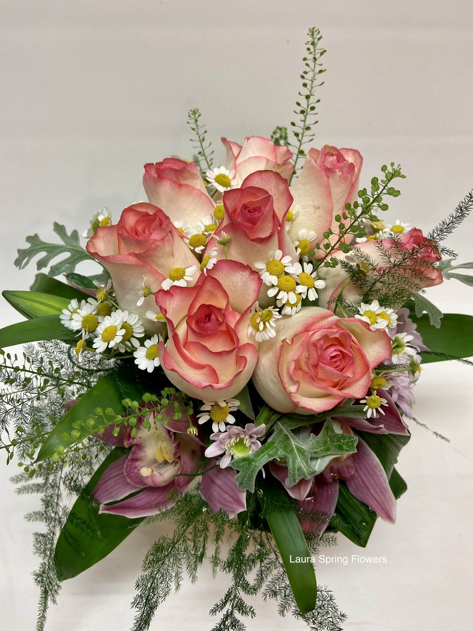 Σύνθεση με ορχιδέες και τριαντάφυλλα